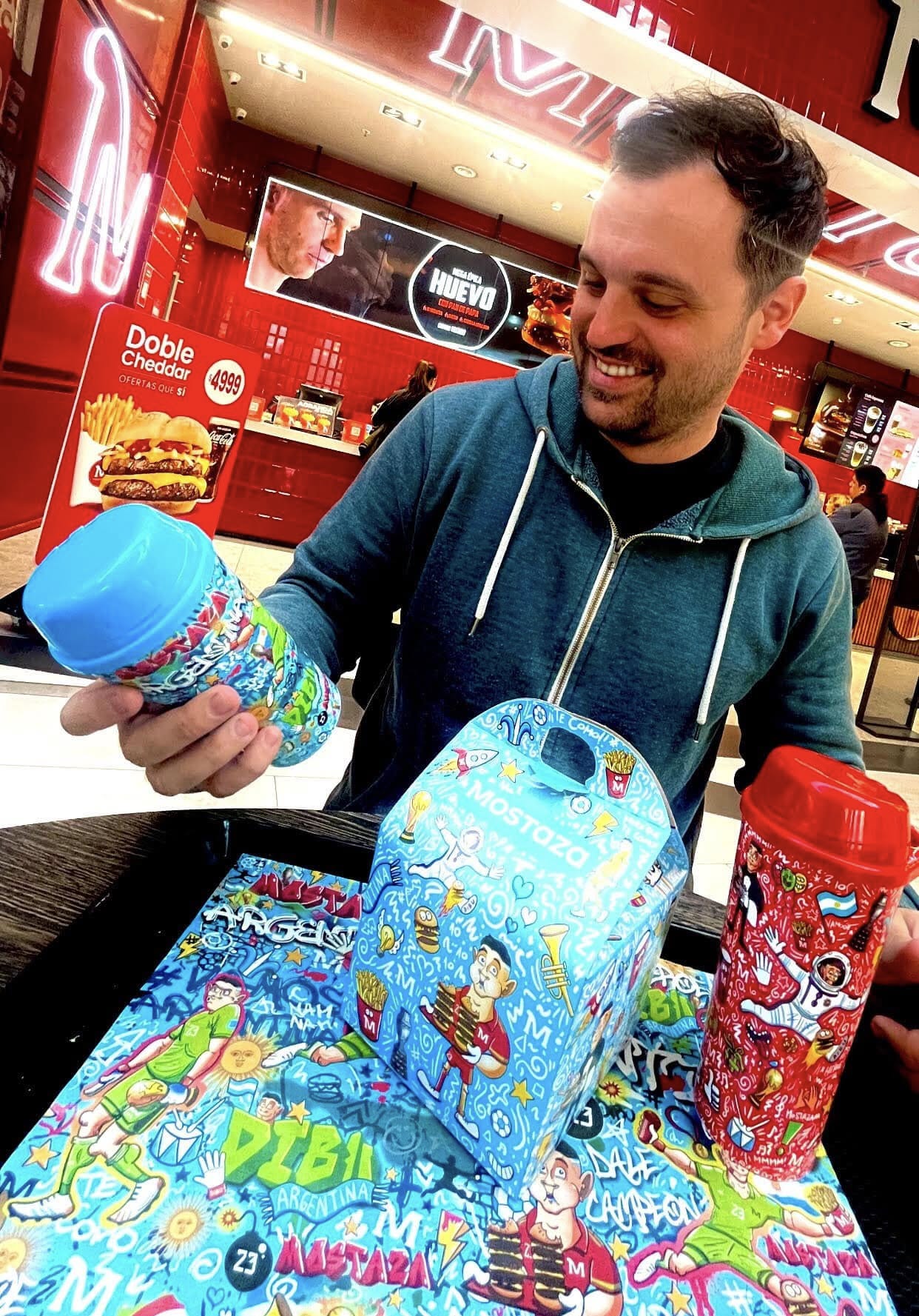 Fui el encargado de desarrollar el arte de los vasos coleccionables, la cajita Mostaza, la papelería institucional y las piezas de promoción digital, plasmando en cada diseño la esencia del fútbol, la pasión argentina y el espíritu de la marca.