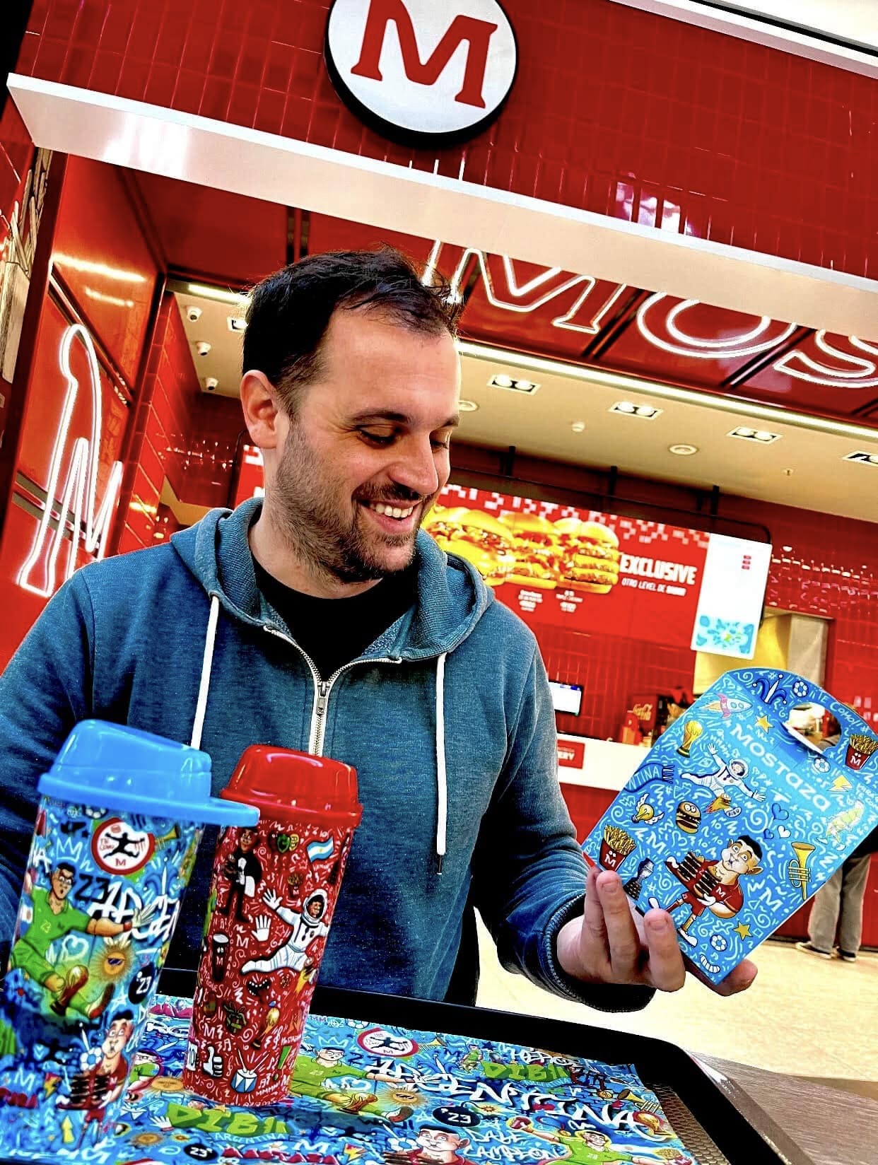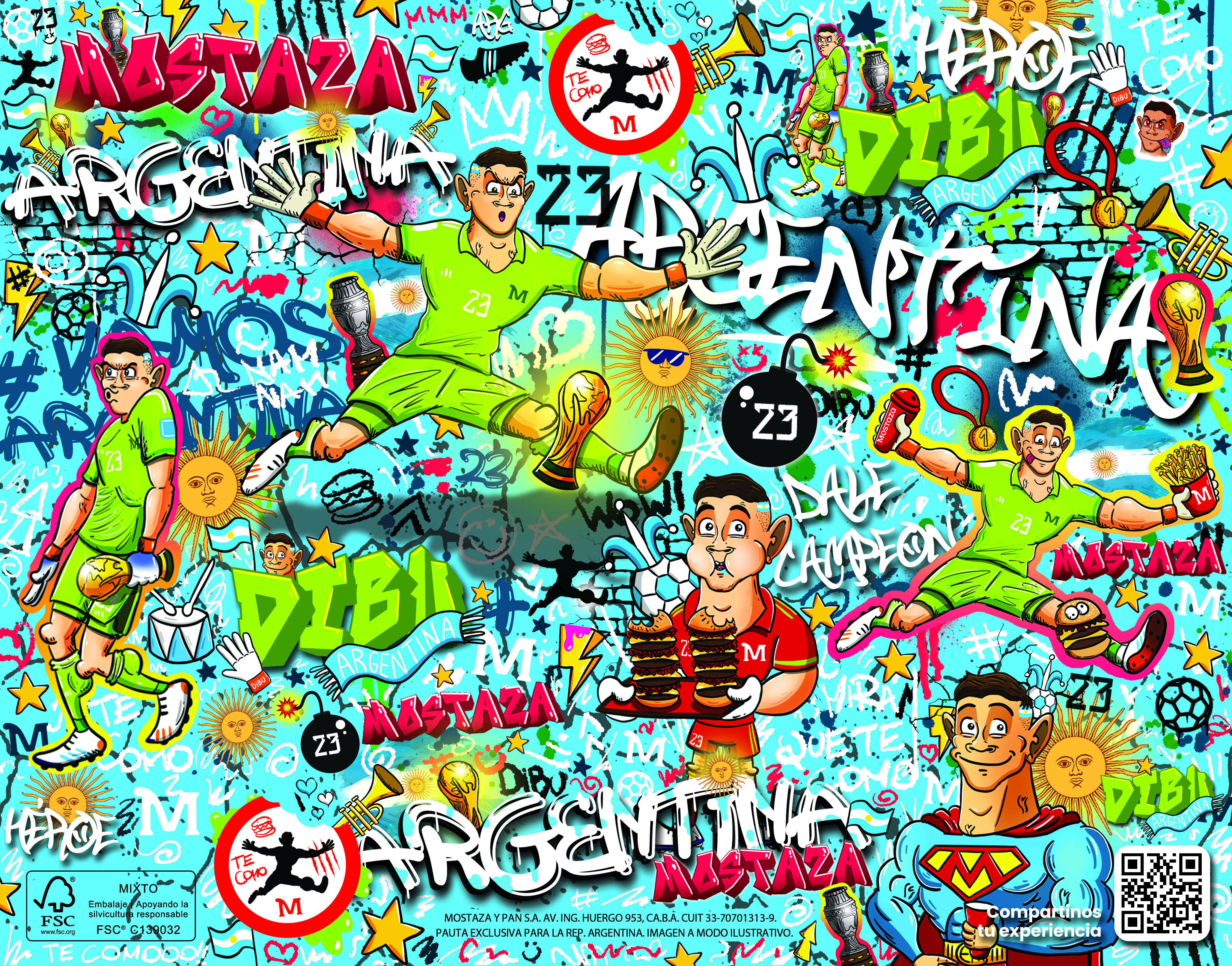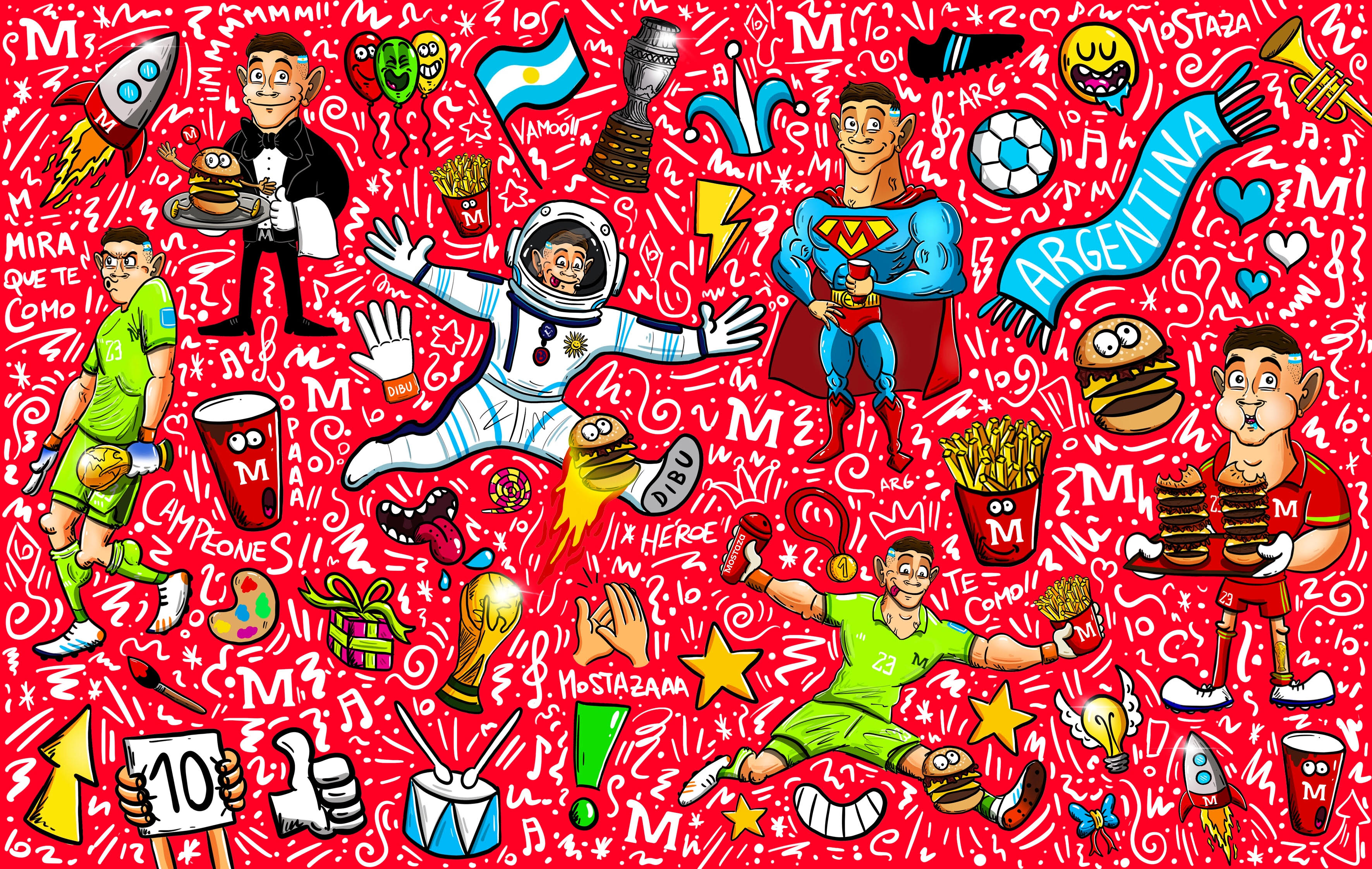 Fui el encargado de desarrollar el arte de los vasos coleccionables, la cajita Mostaza, la papelería institucional y las piezas de promoción digital, plasmando en cada diseño la esencia del fútbol, la pasión argentina y el espíritu de la marca.