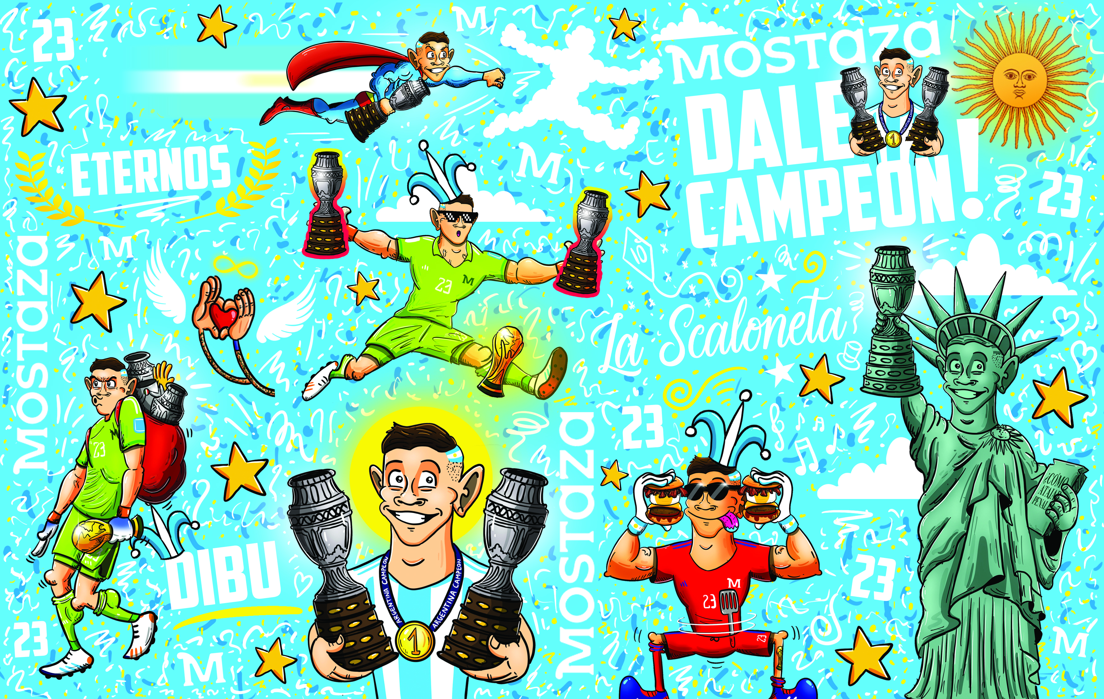 Mostaza me convocó como artista para crear el branding visual de su campaña EPICA de la Copa América 2024, con Dibu Martínez como figura central.