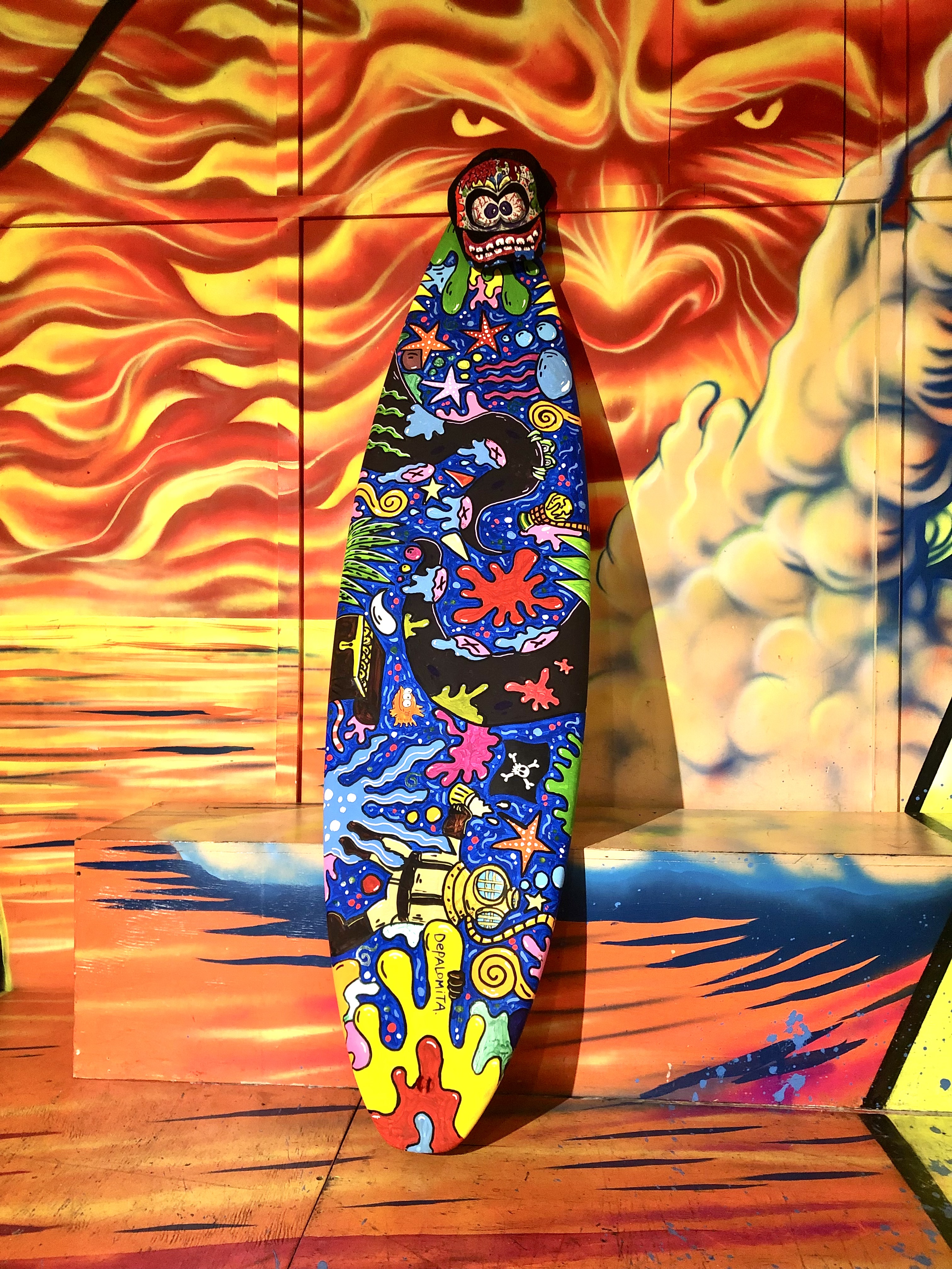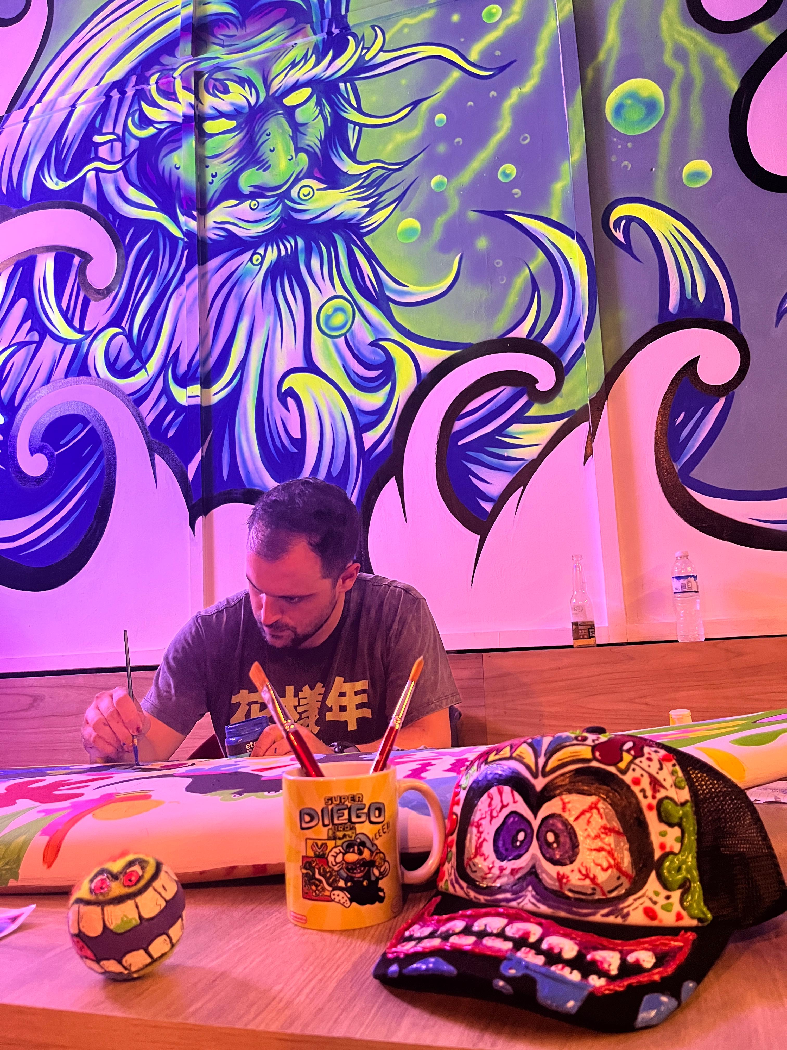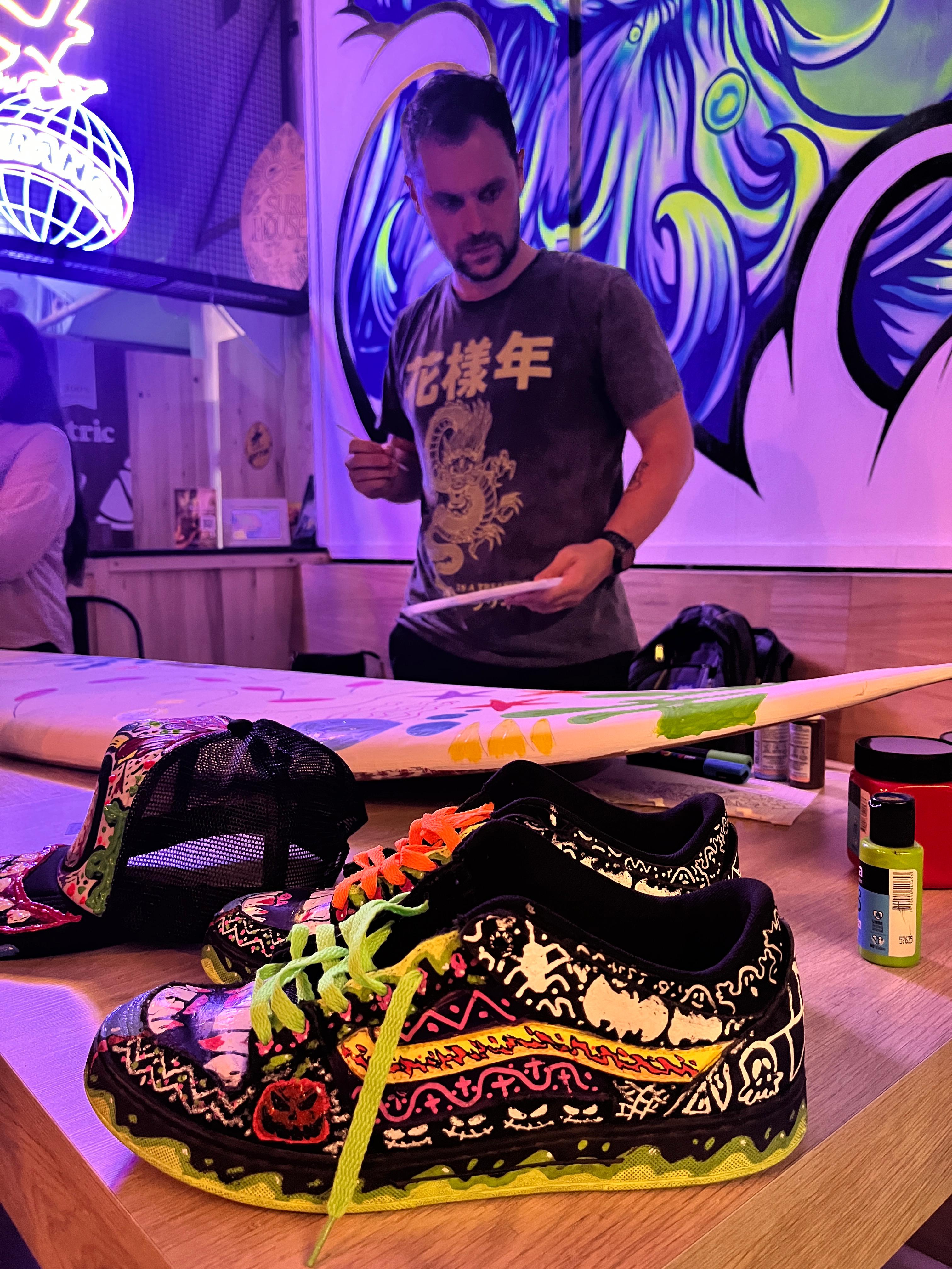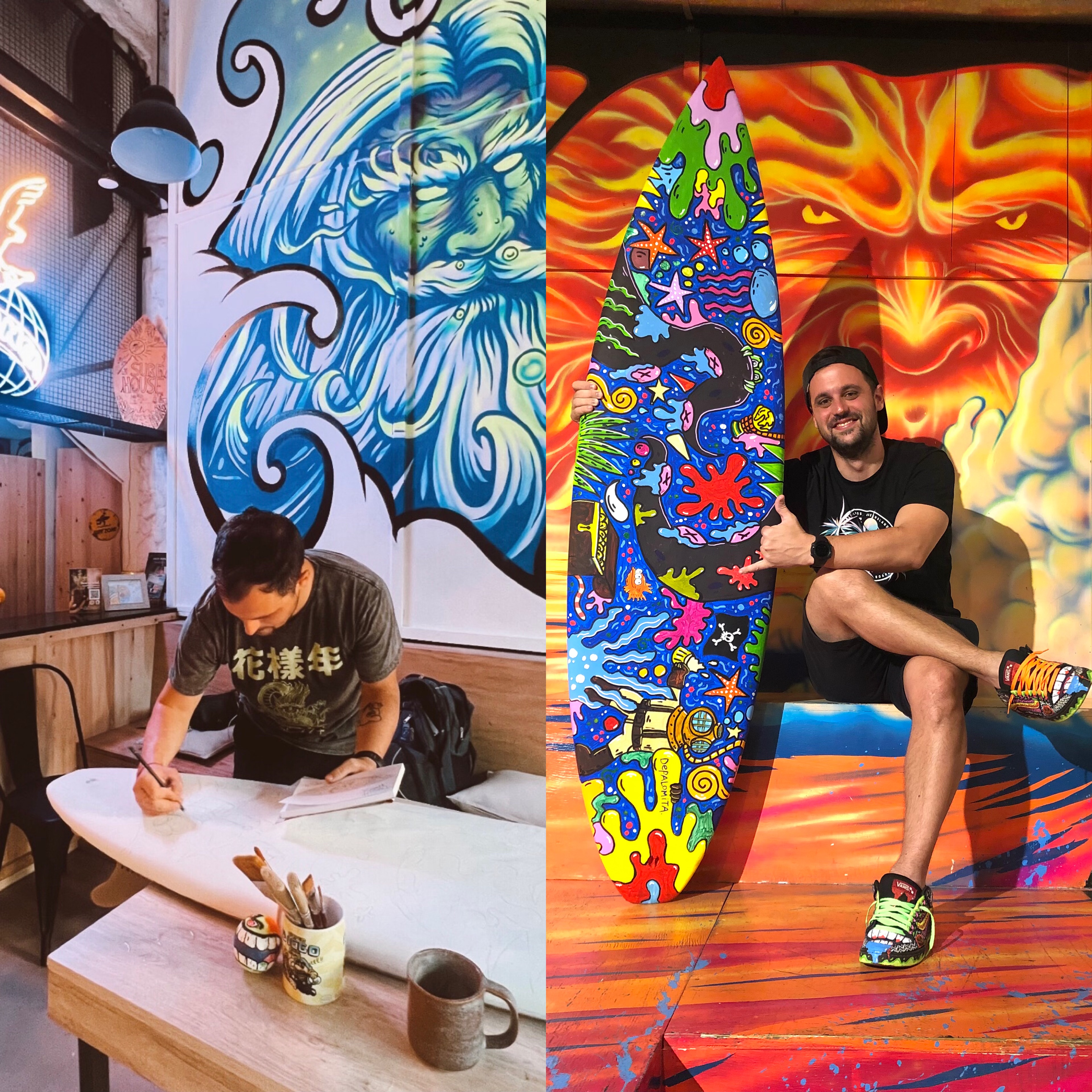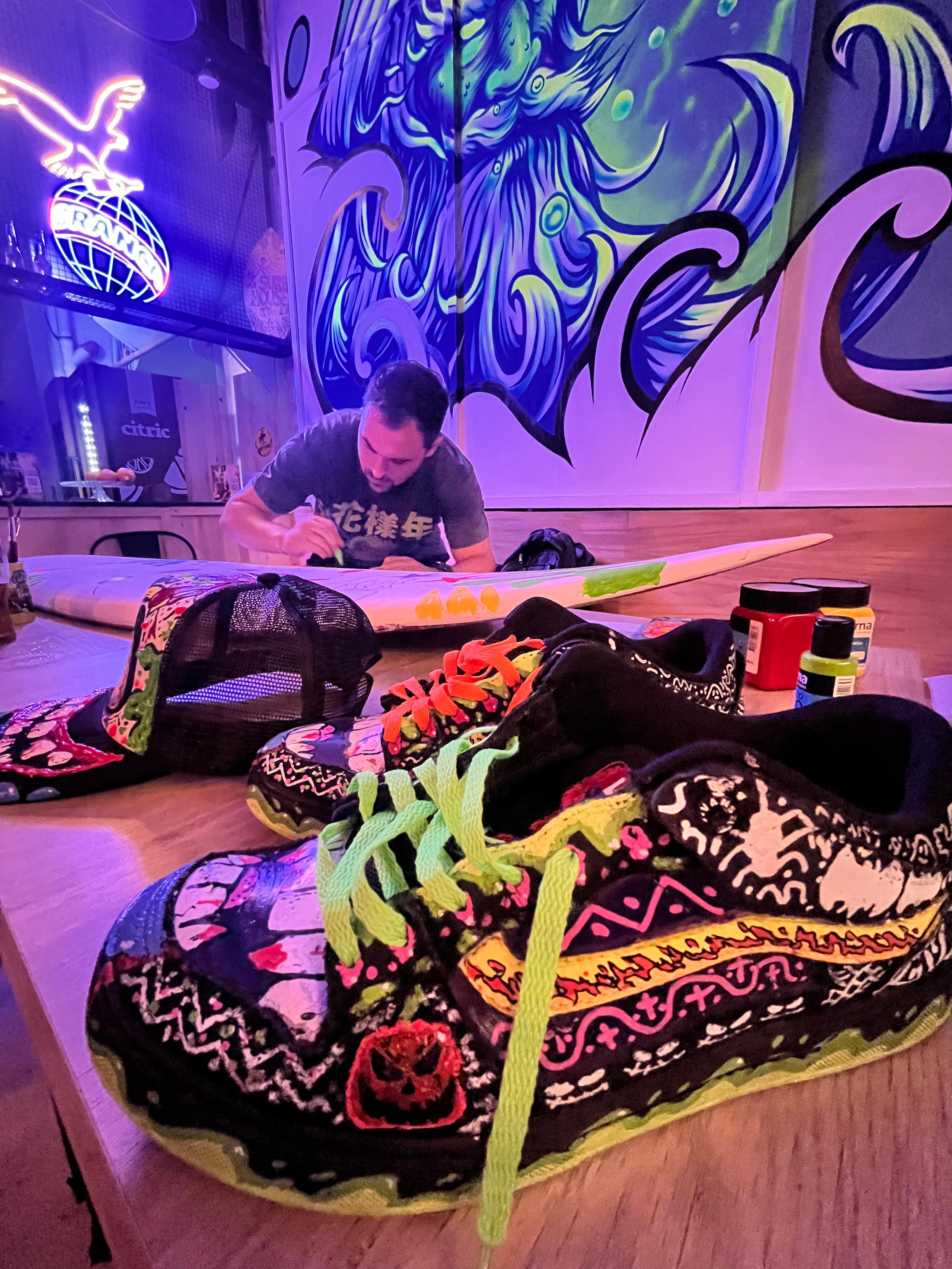The Surf House me convocó para intervenir en vivo una de sus tablas de surf durante su fiesta de fin de año. (2024)