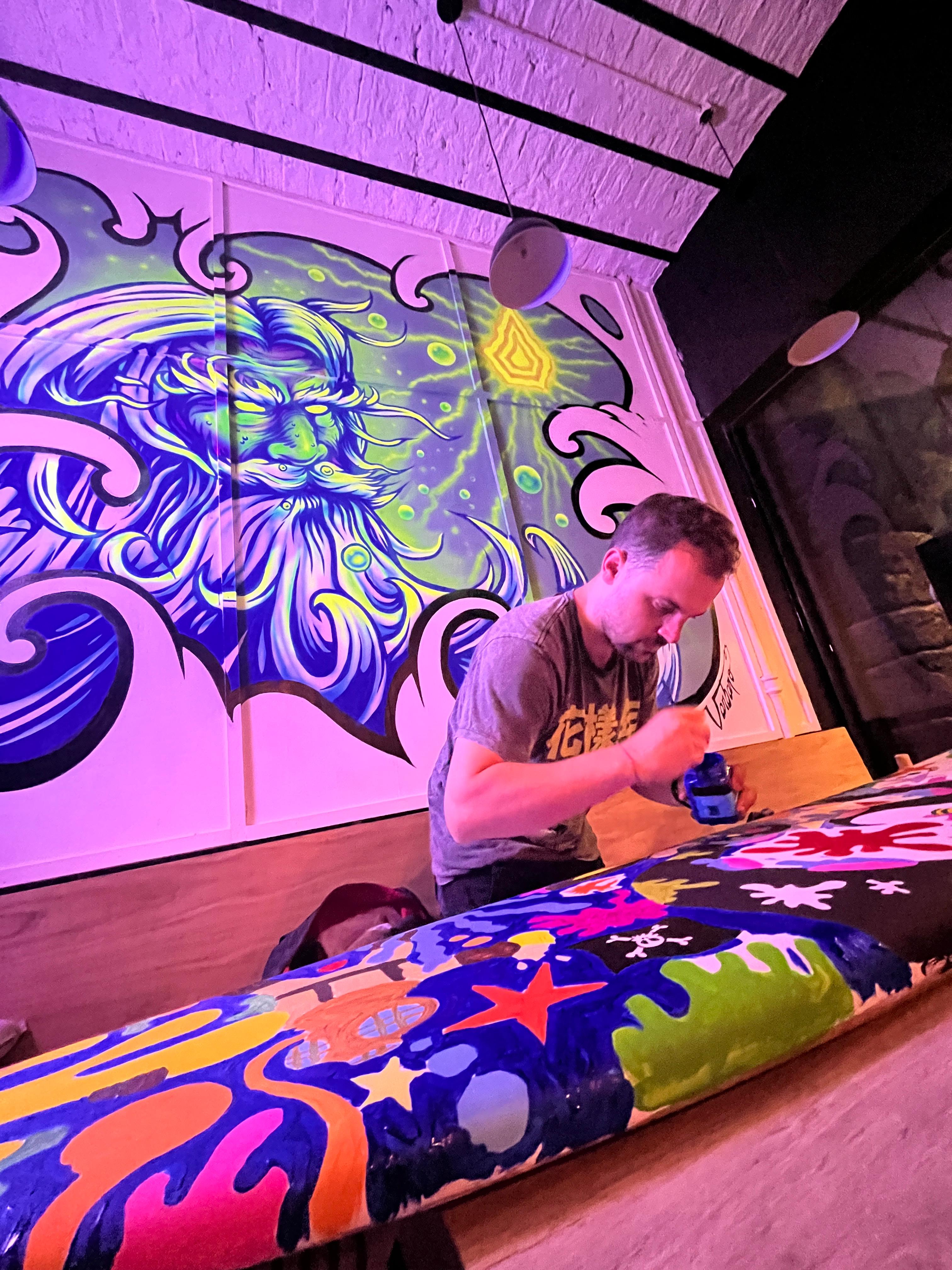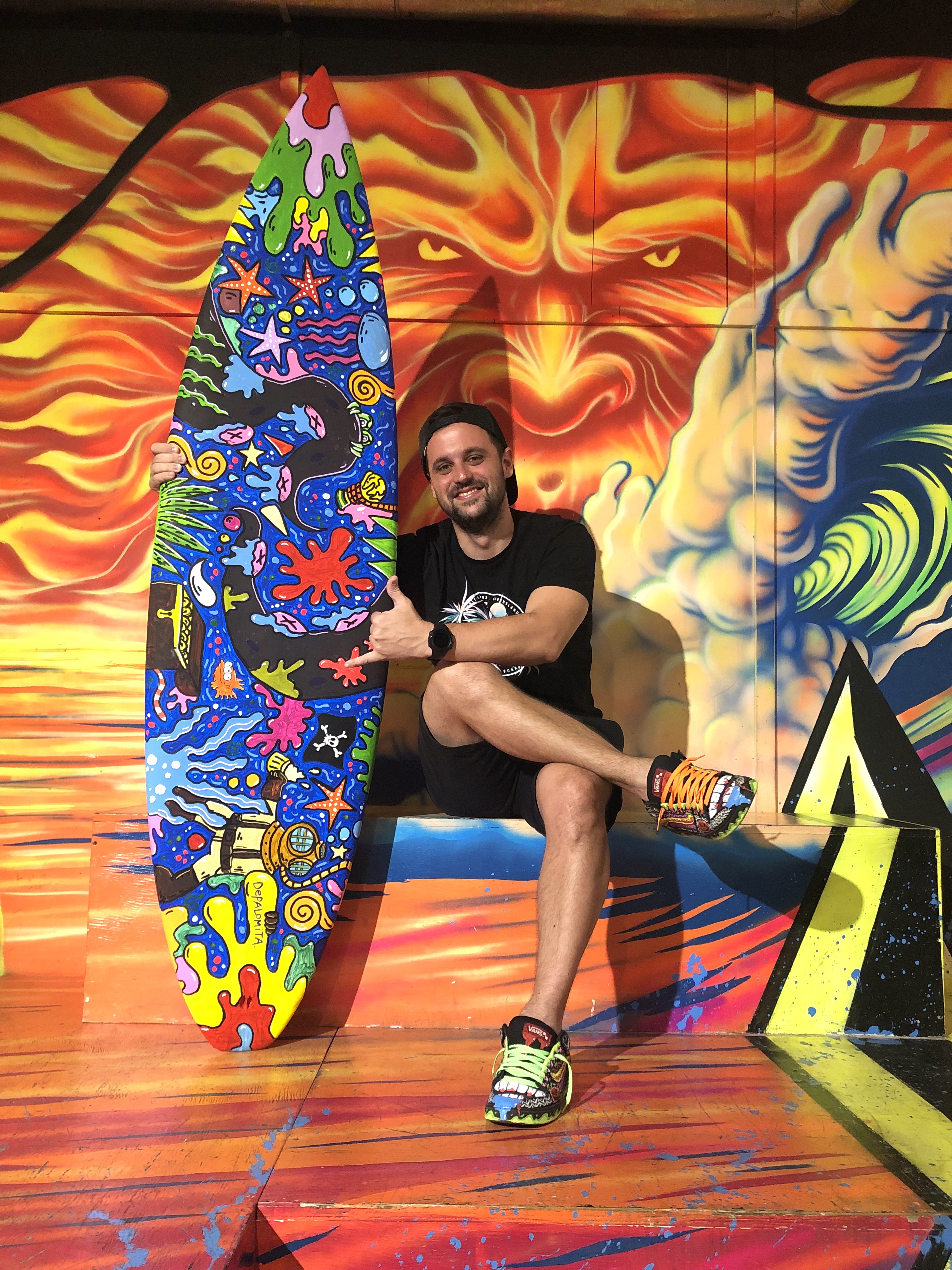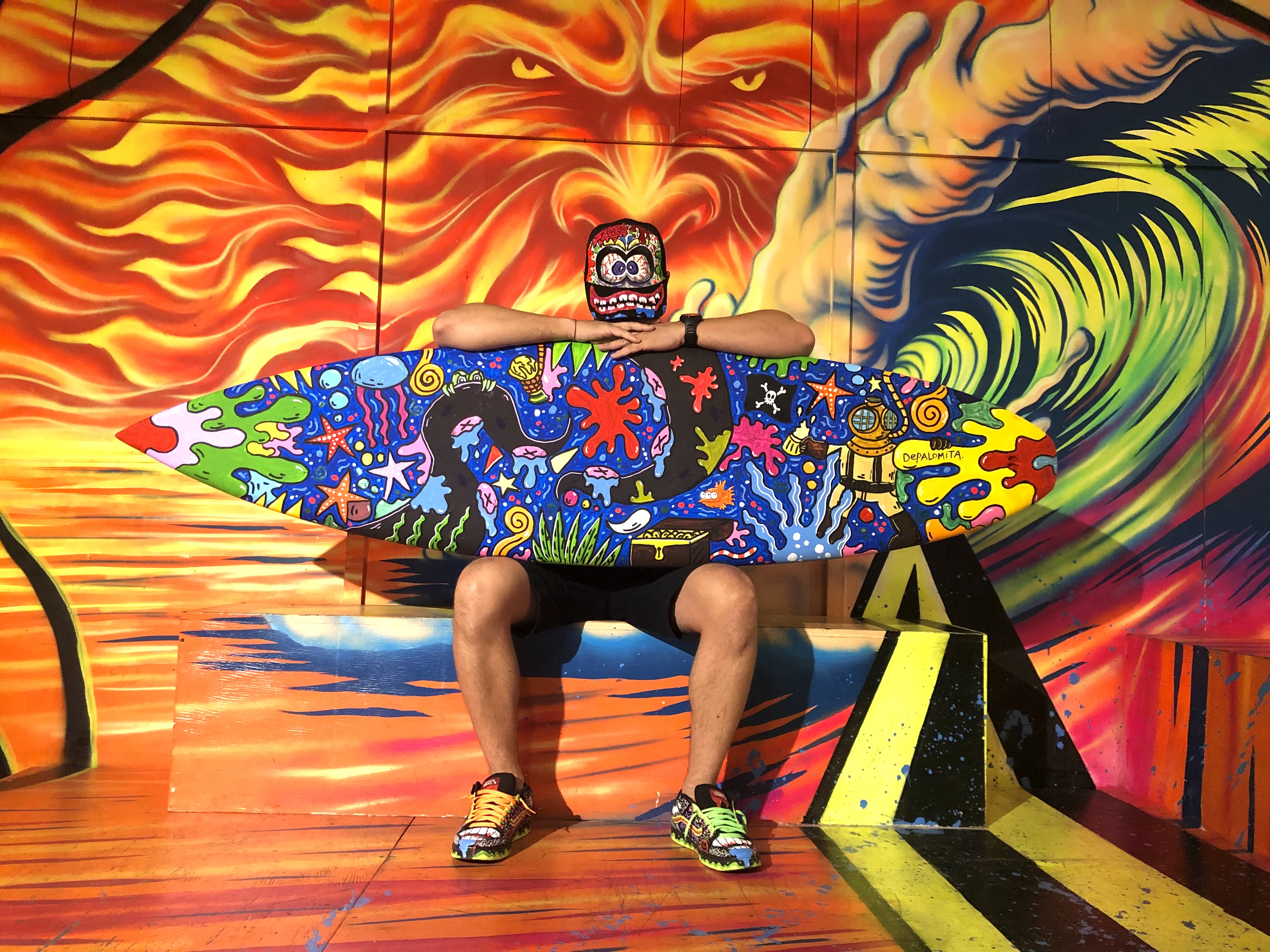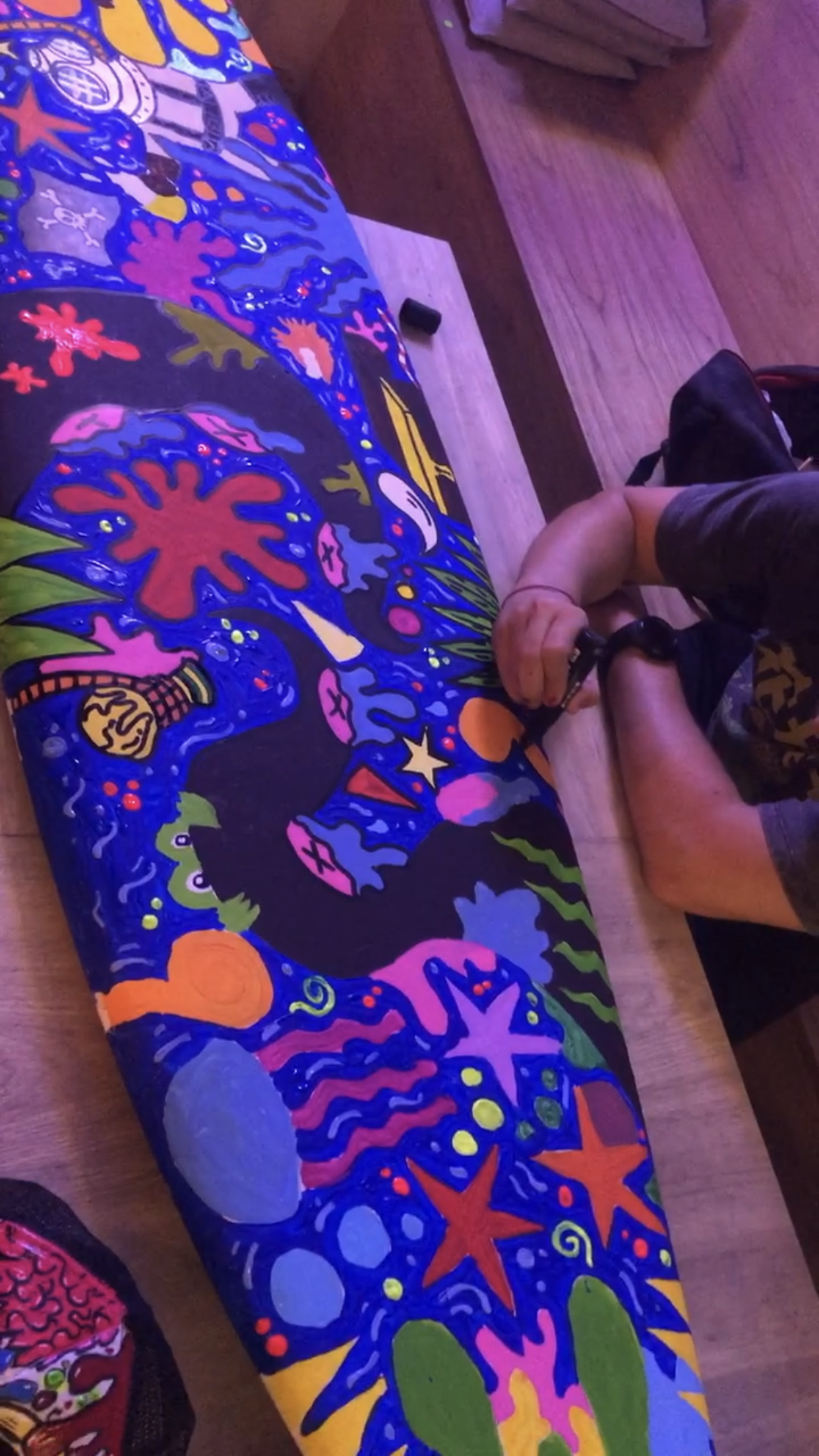 The Surf House me convocó para intervenir en vivo una de sus tablas de surf durante su fiesta de fin de año. (2024)