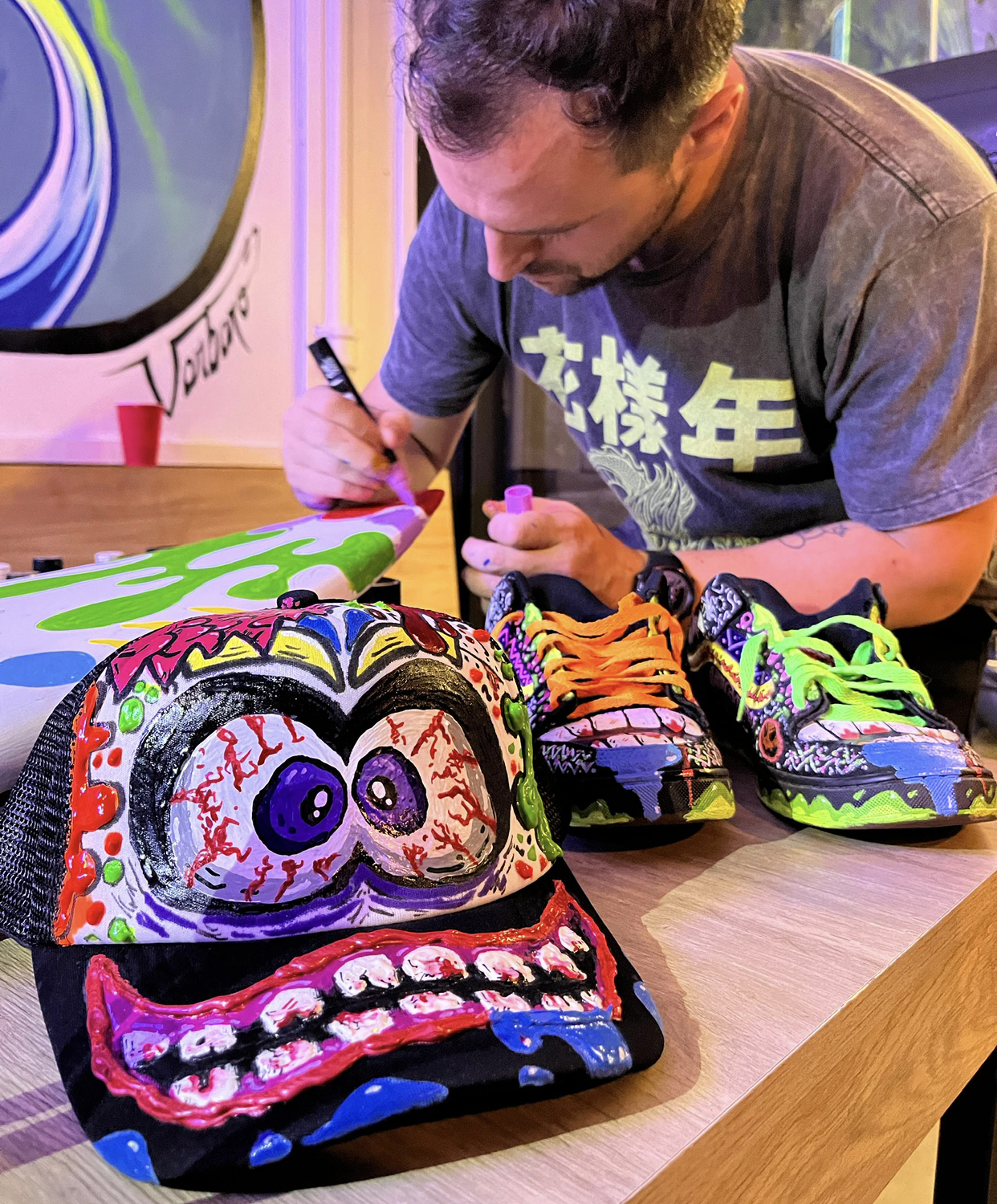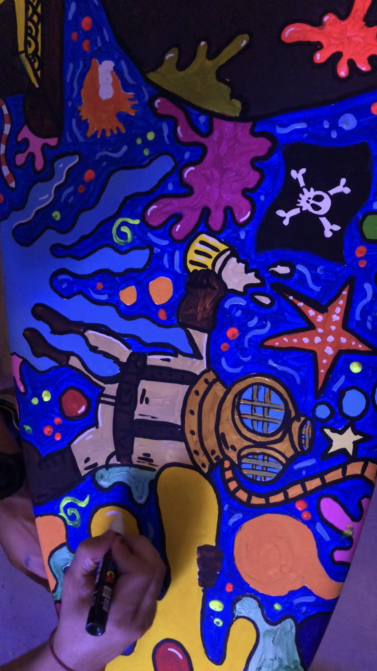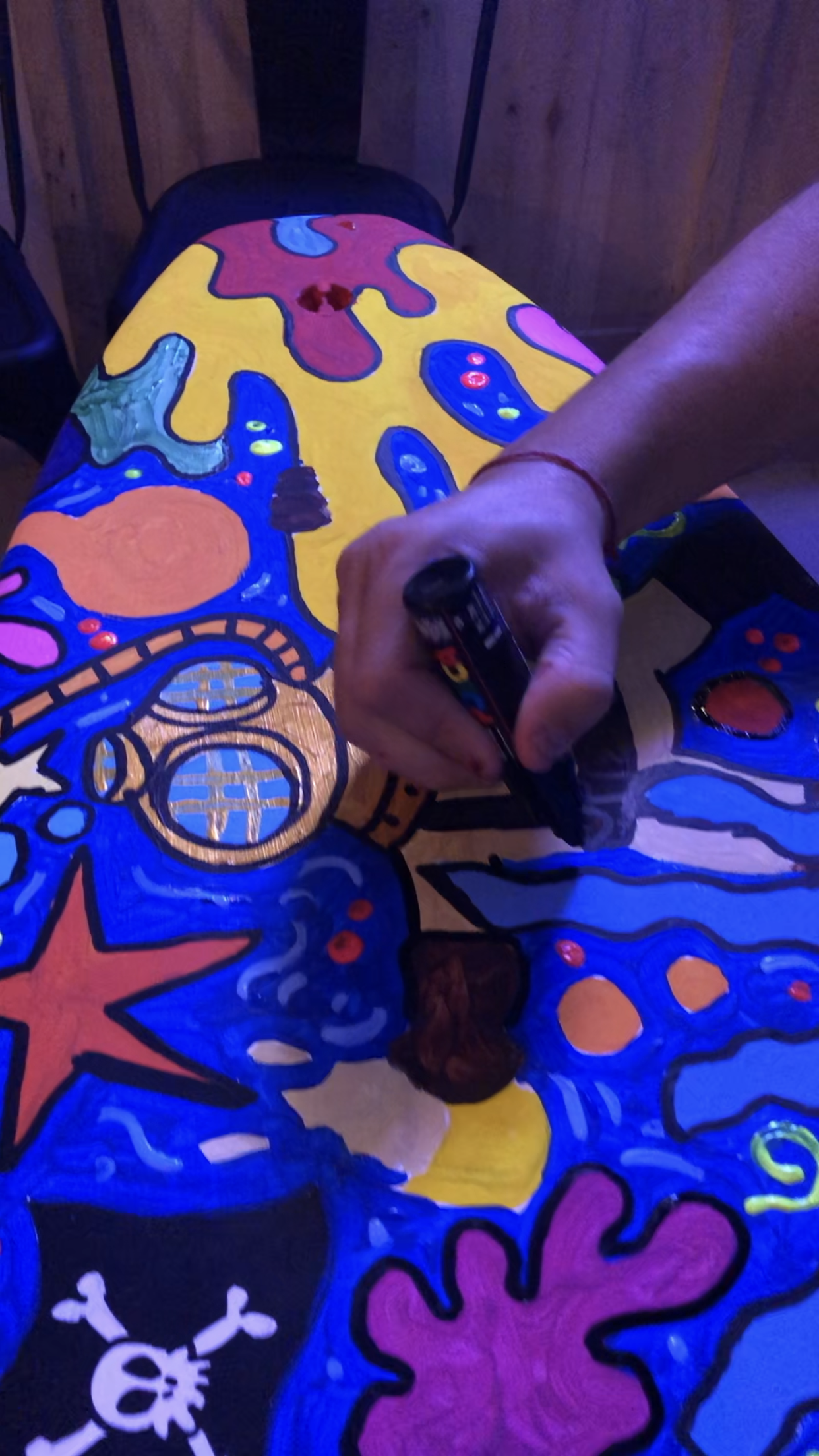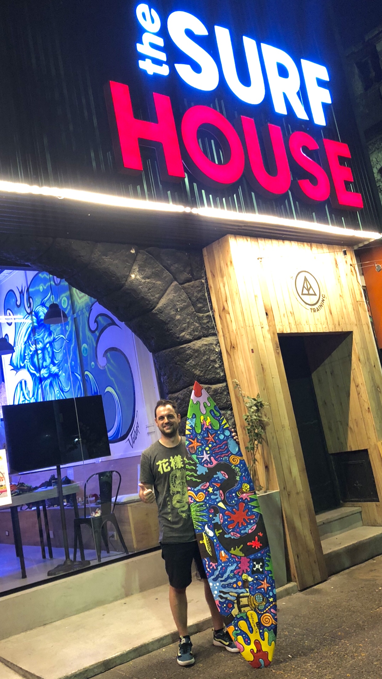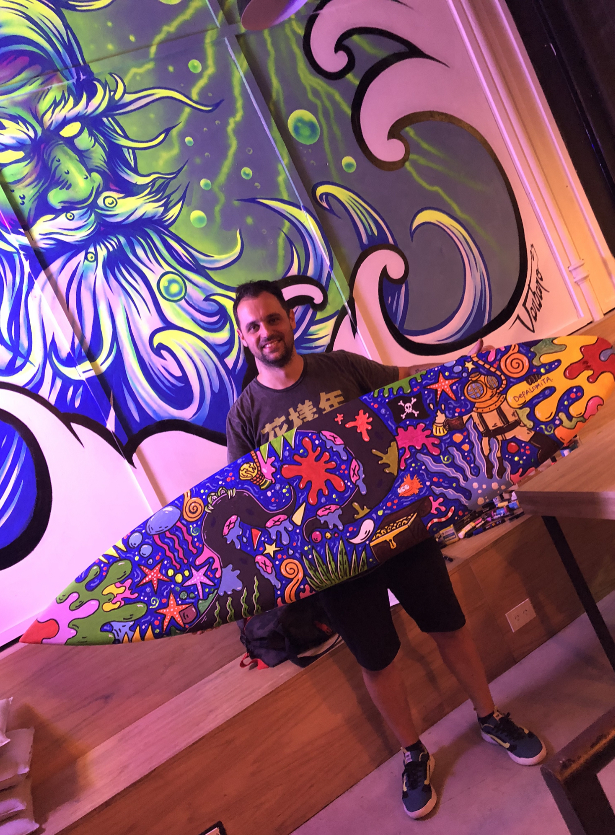 The Surf House me convocó para intervenir en vivo una de sus tablas de surf durante su fiesta de fin de año. (2024)